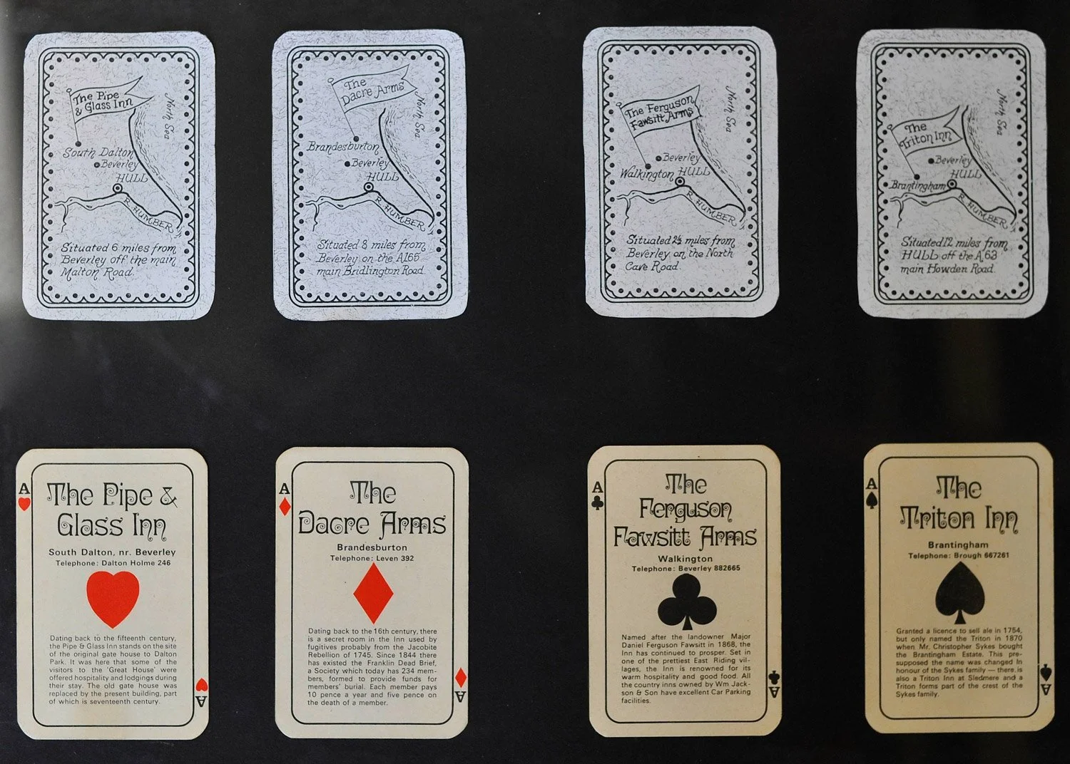 In the 1950s, the pub was bought from the Hotham family by Hull’s Jackson family, better known for their chain of bakeries and grocer’s shops. They create a set of playing cards featuring The Pipe and Glass Inn as well as the other pub they owned.